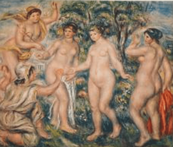 early modernism especially Renoir, Ingres, Cezanne, Gauguin, Matisse and Denis, some cubism especially Picasso